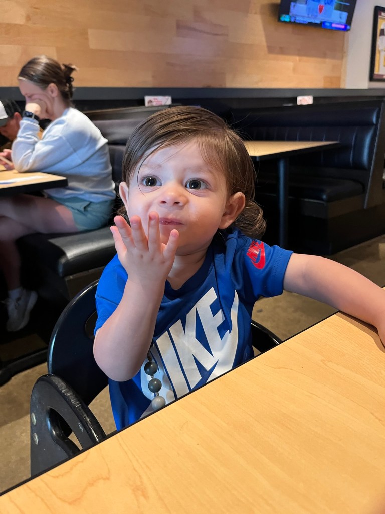 He is now 1 year and 6 months ! He’s walking around. Hes babbling up a storm and playing with him makes me the happiest human in the whole world !